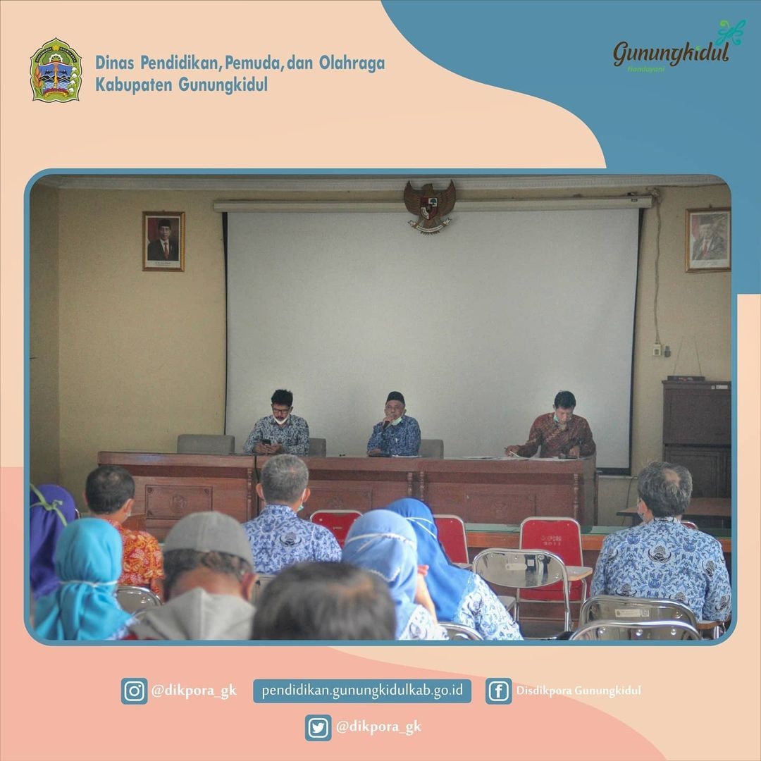WONOSARI- Dinas Pendidikan, Pemuda, dan Olahraga (Disdikpora) Kabupaten Gunungkidul Melaksanakan Kegiatan Rakor Awal Tahun Pelajaran 2021/2022 Jenjang SMP. Kegiatan
